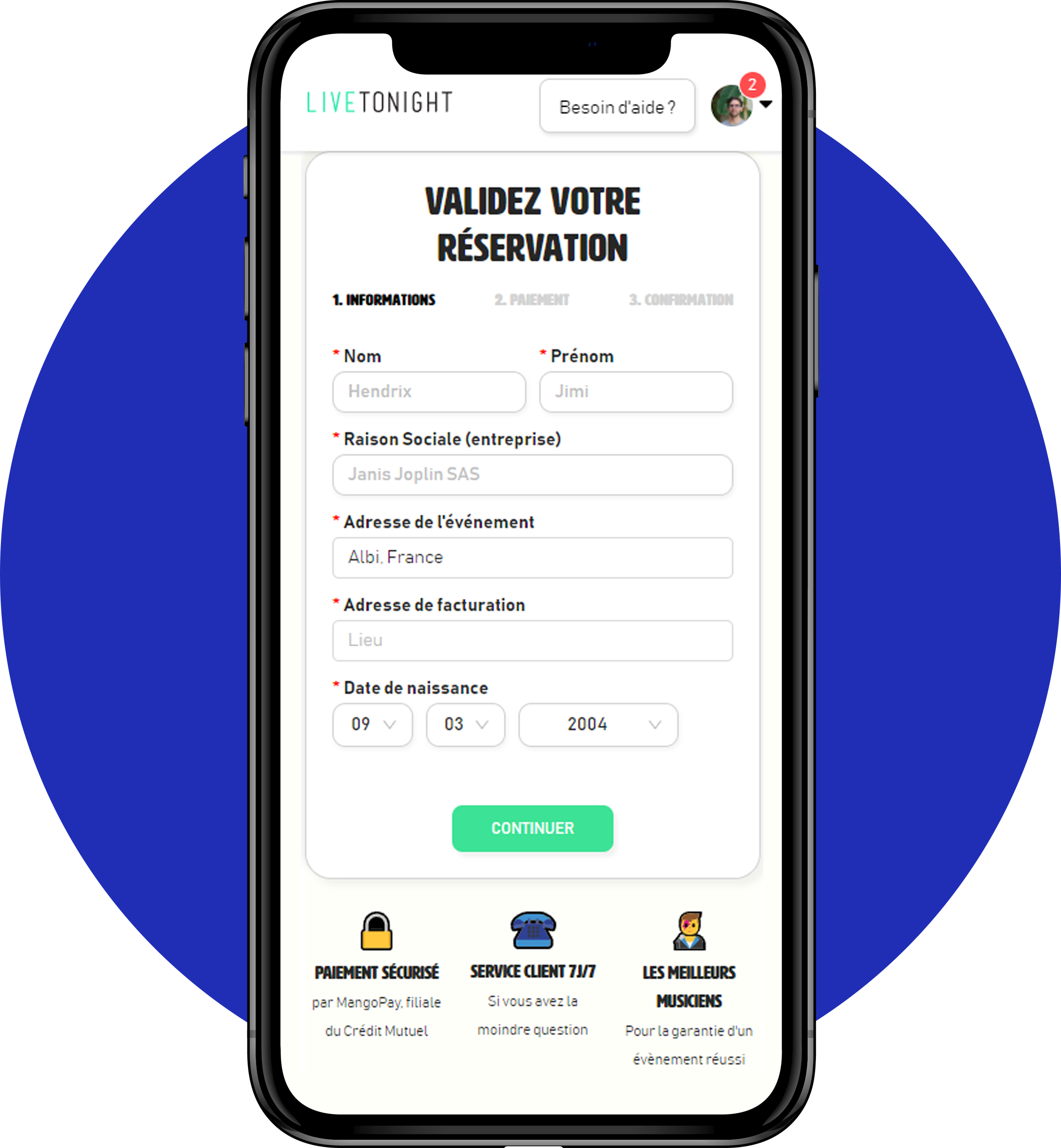 LiveTonight a développé plusieurs moyens de paiement pour faciliter la réservation :